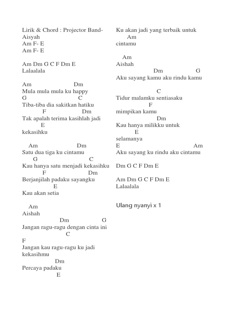 Projector Band Aisyah Lyrics Metrolyrics