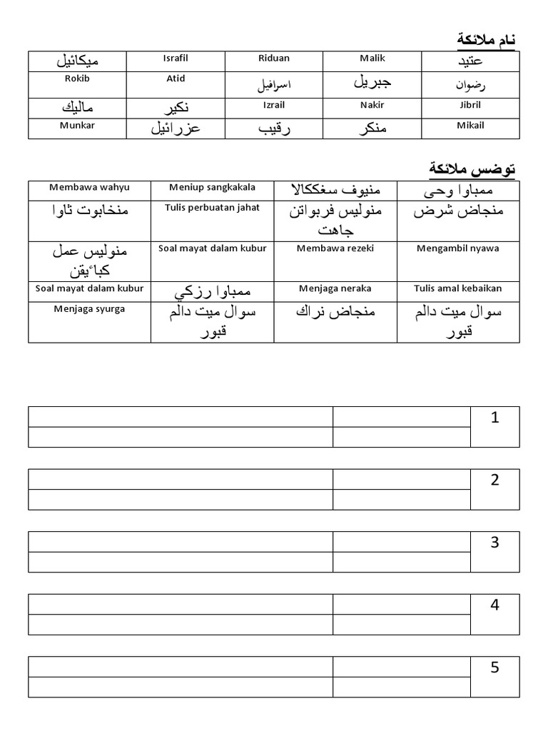 Download Gratis Worksheet Nama Nama Dan Tugas 10 Malaikat Malaikat Belajar Pendidikan
