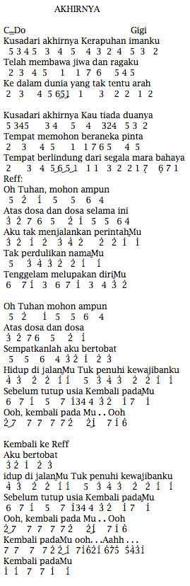 Not Angka Piano Pianika Gigi Akhirnya Lhia S Music Notes