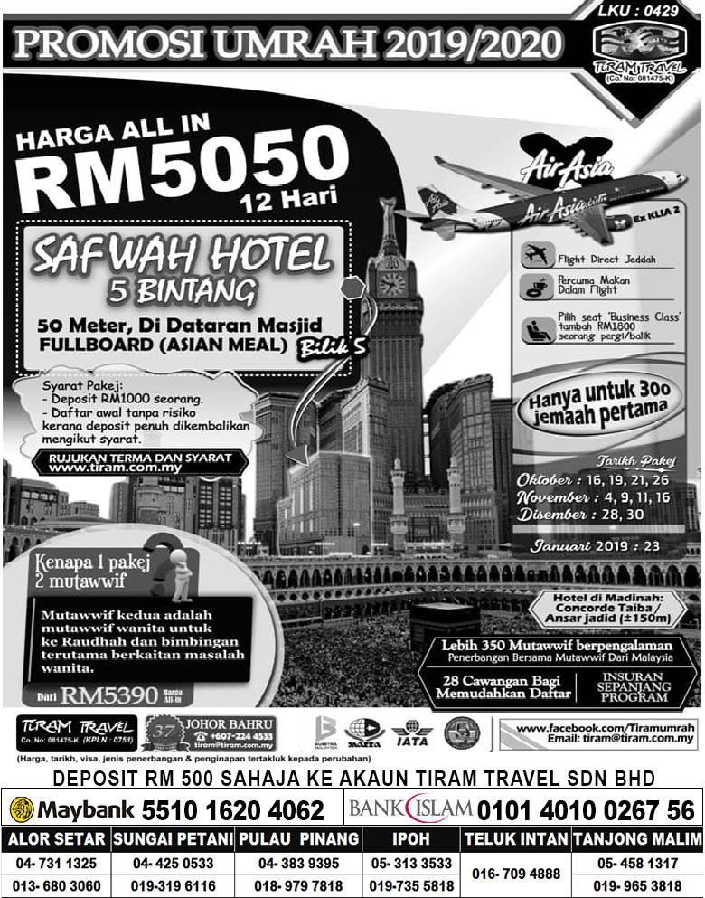 Umrah Promosi 2019 Tiram Travel Sdn Bhd Tiram Travel Haji Umrah Ziarah