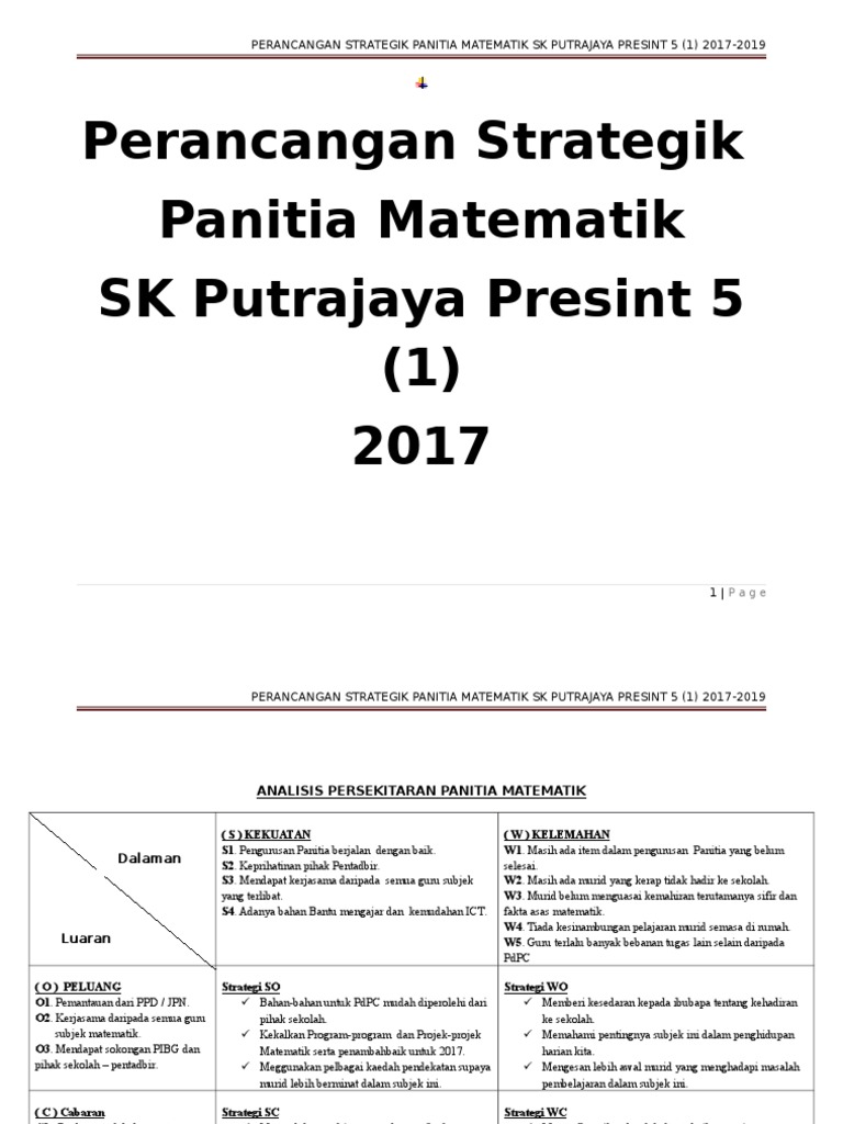 Doc Pelan Strategik Panitia Matematik 2017 Asmani Abu Bakar Academia Edu