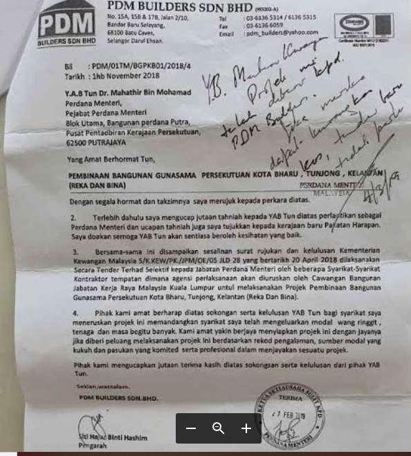 Direct Negotiation Project Viral Support Letter From Tun Mahathir