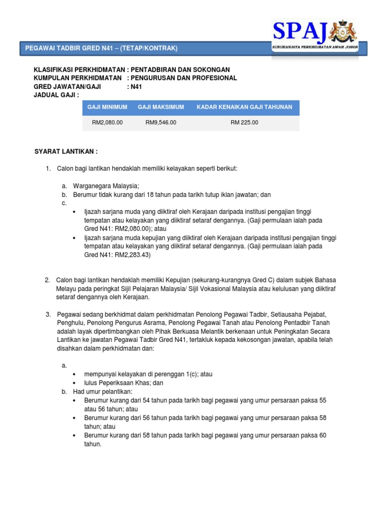 Pegawai Tadbir Gred N41 Gaji Tugas Dan Syarat Lantikan Kerjakosongterkini Info