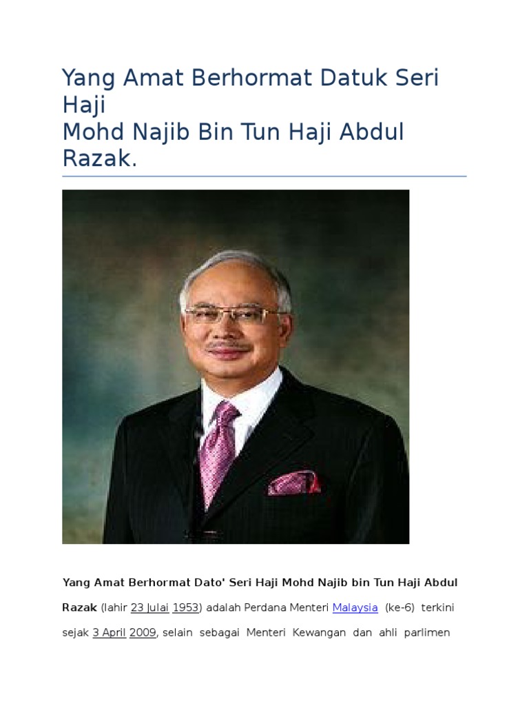Perdana Menteri Ke 6 Docx Perdana Menteri Malaysia Ke U2013 6 Latar Belakang Yang Berhormat Dato Sri Haji Mohammad Najib Bin Tun Haji Abdul Razak Ialah Course Hero