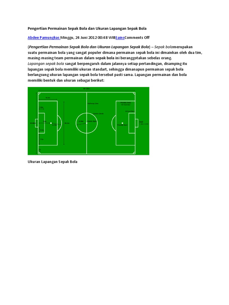 Pengertian Permainan Sepak Bola Dan Ukuran Lapangan Sepak Bola