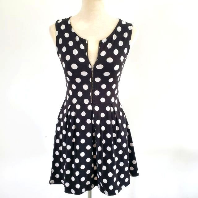 Divided By H M Navy Blue Cream White Polka Dotted A Line Sleeveless Dress 4 2 Xs Ebay