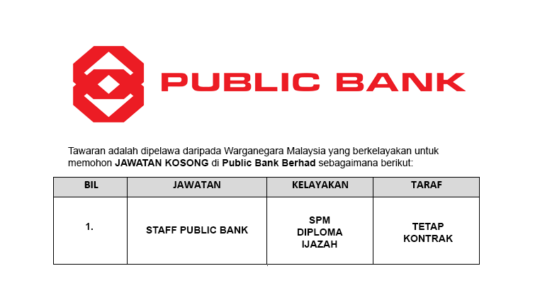 Jawatan Kosong Public Bank Berhad Jawatan Tetap Kontrak Ejawatankini Com